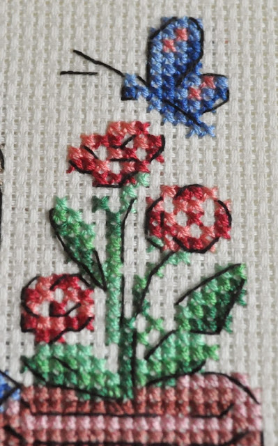 Работать над этой мишкой было очень приятно. Цветная схема, хорошо подобраны оттенки цветов, и ниточек в наборе осталось с запасом. Вышила быстро, вот только оформления в багетке тоже ждала почти месяц. Сезон выставок, и они были загружены оформлениями стендов для производителей. Но ничего, зато они очень хорошо и качественно делают. Ради такого можно и подождать.