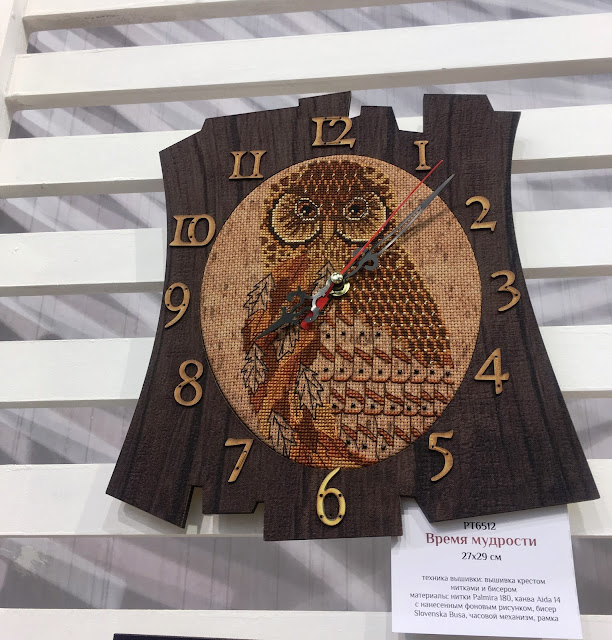 Стенд Nova Sloboda как всегда удивлял необычными основами для картин, а также 3D добавлениями. Что-то из этого видела раньше, но часы с совой порадовали. На дачу наверно интересно